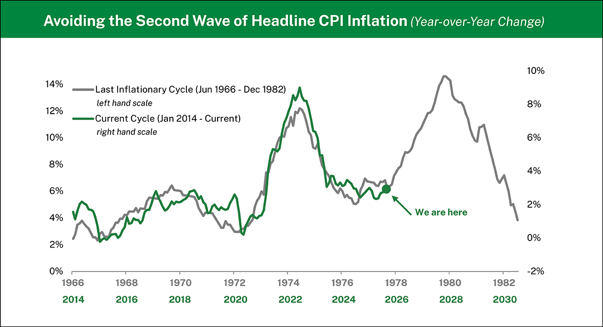 The impact of higher tariffs being passed through to consumers also looms large on the horizon, although many Fed officials have publicly dismissed these concerns as either small or ‘one-off’ impacts. With the field of economics largely considered one of the soft sciences that doesn’t inherently lend itself to natural experiments or controlled trials, history ends up serving as the best guide for policy decision-making. In that regard, we may be approaching a period when Fed officials become keenly aware of wanting to avoid an inflation redux like the US economy experienced in the ‘70s and ‘80s – the last time Consumer Price Index (CPI) inflation spiked in a manner similar to what we experienced in 2022.
