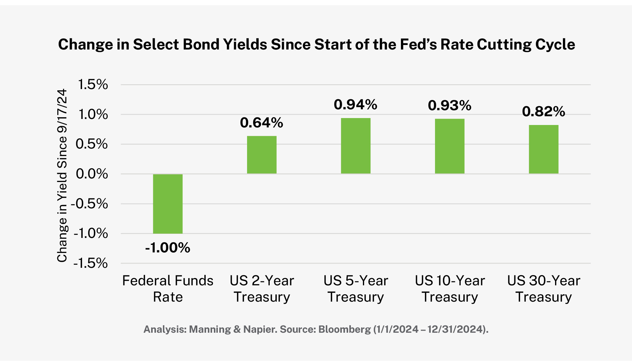 - Uncertainty around the incoming Trump Administration (tariffs, immigration, taxes, etc.) combined with inflation that remains above policymakers’ targets, increases the risk of interest rate volatility.